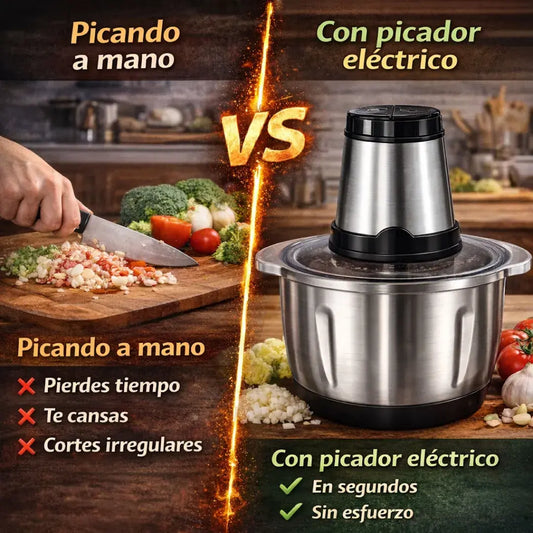Picador Eléctrico 2 Litros y acero inoxidable | Ahorra tiempo y cocina sin esfuerzo en segundos
